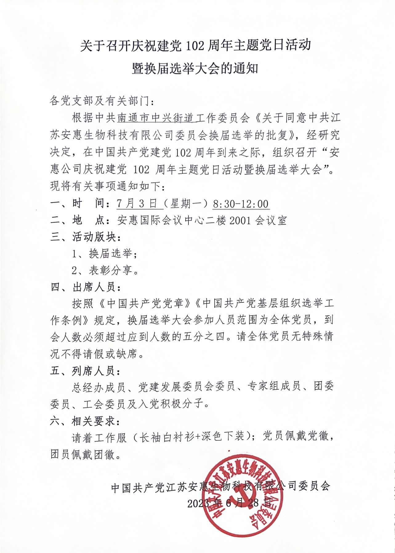 關(guān)于召開慶祝建黨102周年主題黨日活動暨換屆選舉大會的通知