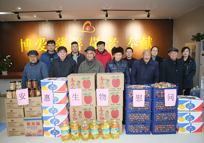 2018年2月6日,在春節(jié)即將到來之際,安惠公司副董事長陸漢萍、黨委副書記金敏林、工會主席李士強(qiáng)和安惠江海志愿者一行來到南通開發(fā)區(qū)敬老院,看望這里的老人,給他們送去慰問品和節(jié)日的祝福。