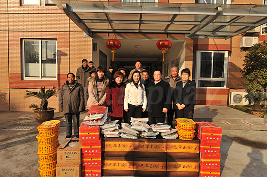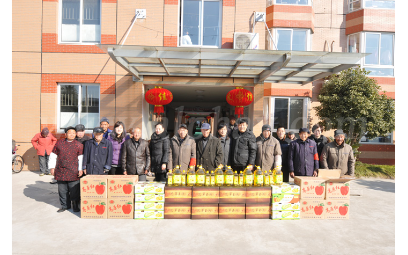 2014年1月23日上午,安惠公司黨委副書記金敏林、工會主席李士強、團委書記竺婷一行來到南通開發區敬老院,看望和慰問在這里生活居住的老人,為他們送去靈芝酒、食用油、水果等節日慰問物資,表達全體安惠人對他們的關懷。