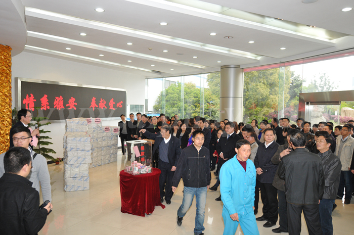 2012年10月24日,安惠公司十周年慶典現場,公司向南通開發區慈善會捐款200萬元,成立安惠愛心慈善基金,用于“助學、助醫、助殘、助困、助老、助孤”六個項目。南通開發區慈善會會長周健和安惠公司副董事長陸漢萍共同為愛心慈善捐贈點揭牌。